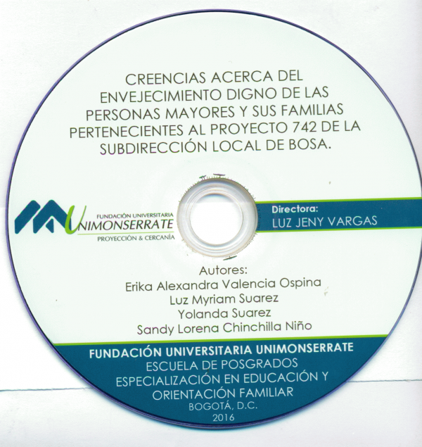 Creencias acerca del envejecimiento digno de las personas mayores y sus familias pertenecientes al proyecto 742 de la subdirección local de Bosa Yolanda Suarez Alba, Sandy Lorena Chinchilla Niño, Luz Myriam Suarez Alba, Erika Alexandra Valencia Ospina por Series Educación y Orientación FamiliarIdioma: Español Bogotá Fundación Universitaria Monserrate 2016