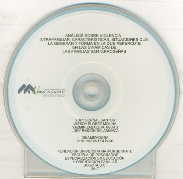 Análisis sobre violencia intrafamiliar, características, situaciones que la generan y forma en la que repercute en las dinámicas de las familias santarroseñas Yuly Bernal Santos,Wendy Flórez Molina,Yazmin Zabaleta Aguas,Ludy Maricela Rincón Salamanca ;Dinamizadora Nubia Patricia Bolivar Sánchez por Idioma: Español
