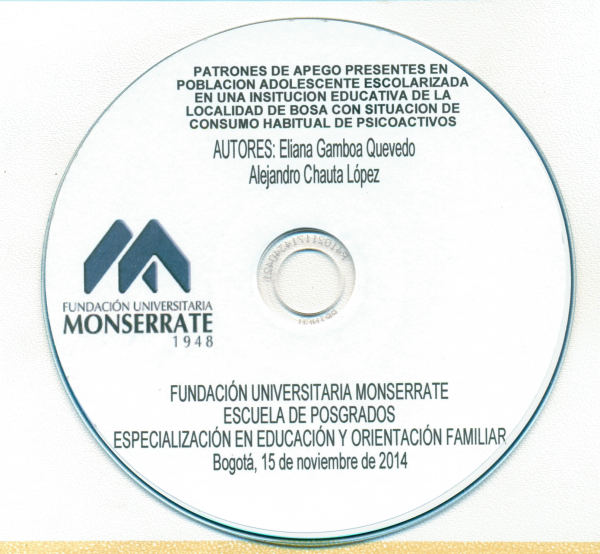 Patrones de Apego Presentes en Población Adolescente Escolarizada En Una Institución Educativa de la Localidad De Bosa Con Situación de Consumo Habitual De Sustancias Psicoactivas. Eliana Gamboa Quevedo, Alejandro Chauta López por Idioma: Español Bogotá Fundación Universitaria Monserrate 2014
